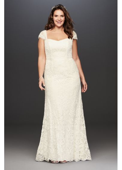 » Melissa Sweet Linear Lace Plus Size Wedding Dress - Melissa Sweet Linear Lace Wedding Dress - Davids Bridal : Romantic lace gets a fresh take on this sheath wedding dress with a captivating opulent linear motif and sixty yards of airy tulle.